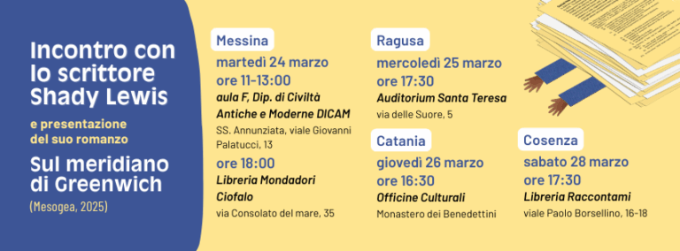 L’autore egiziano Shady Lewis arriva in Italia per un primo tour di presentazione del suo romanzo Sul meridiano di Greenwich: violenze e paradossi delle società